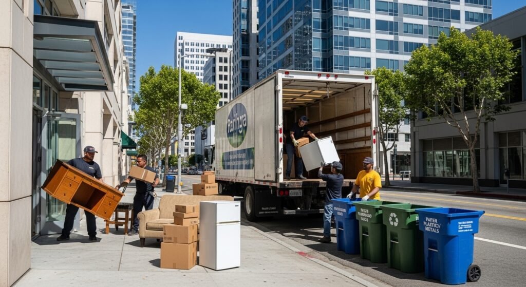 Professional teams separate recyclable items during the cleanout process. This step ensures proper handling of different materials.